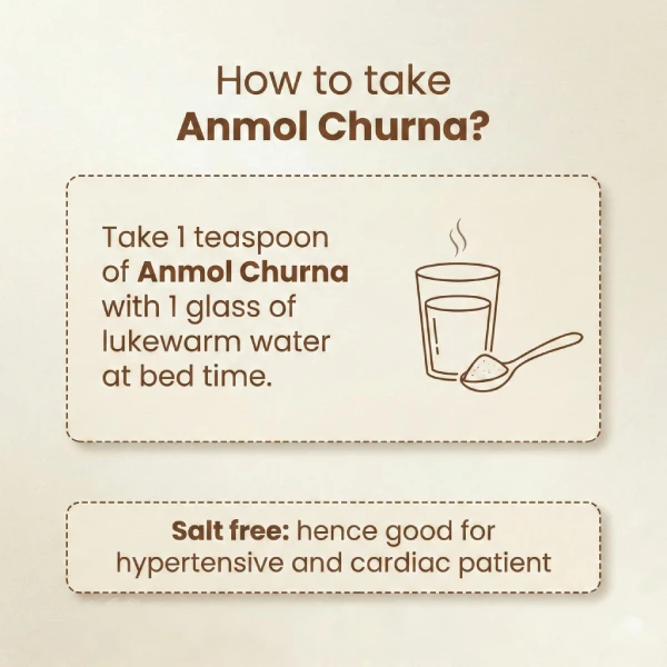 • REGULAR USE SAFETY : Designed for safe regular use, Anmol Churna helps Prevent Hard Stools, Straining, and Incomplete Evacuations while Improving Overall Digestion.